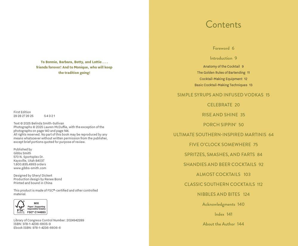A collection of approximately 90 recipes for classic Southern cocktails, new flavor-profile mixed drinks, and a bonus chapter of nibbles—after all we are talking about Southern hospitality, and no Southern host would serve you a drink without offering a tasty treat to accompany it!