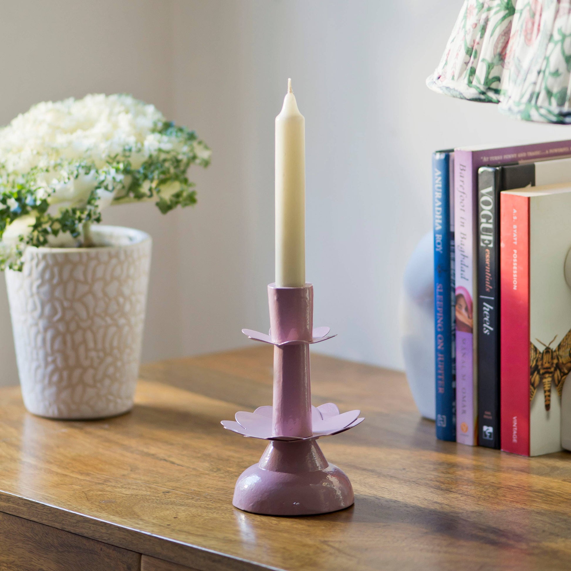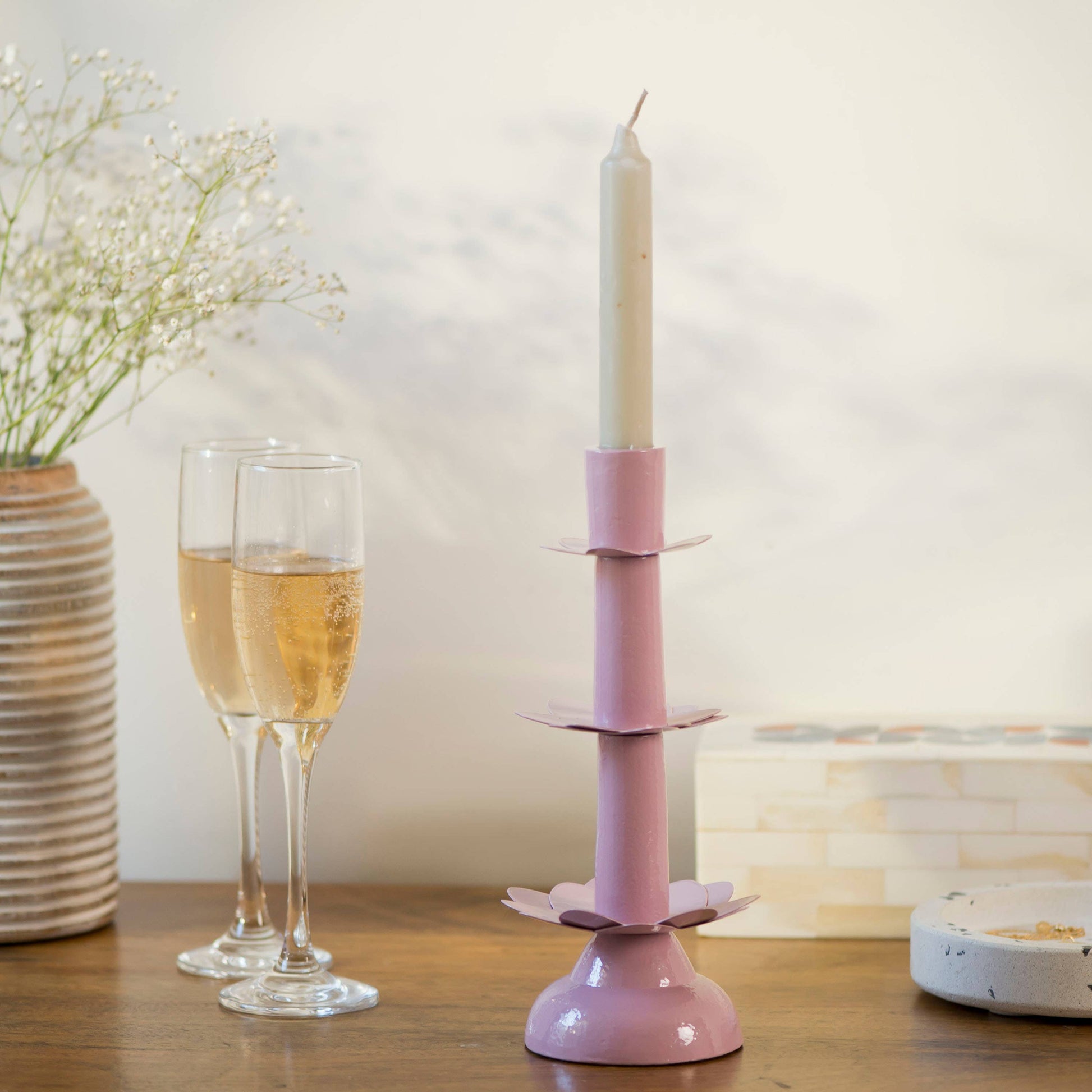 Inspired by the flowers we love, the tiers of petals in the Lotus Blossom Metal Taper Candleholder create a light, elegant look.